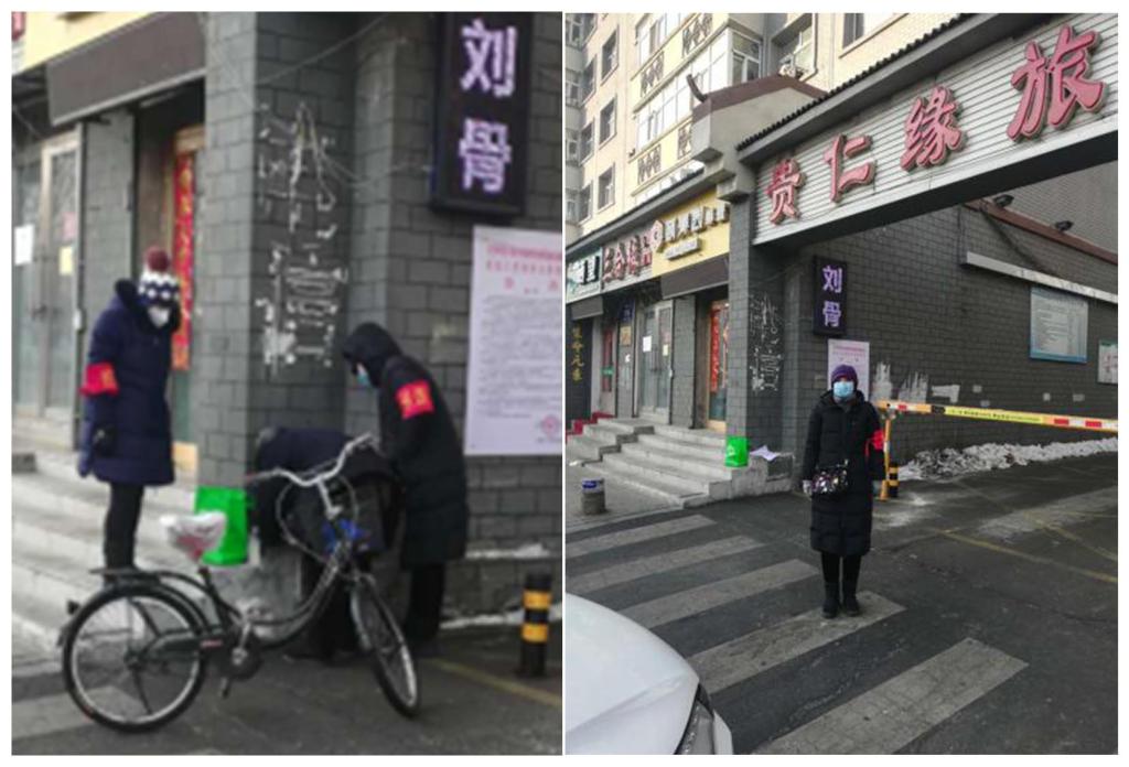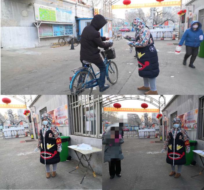 “我的本職工作就是教書育人,在重大疫情面前,我作為教師,作為黨員,應該為我的學生樹立榜樣,初心使命不是說出來的,而是真刀真槍干出來的,這些都是我應該做的”。2月7日,馬克思主義學院教師高學軍報名參加了由齊齊哈爾市建華區王仔花苑臨時社區黨委組成的黨員志愿隊,上圖是她第一次值崗被安排在解放門醫院的坤順小區協助防疫值班的情景。她每隔2至3天就會輪一次崗,主要負責為出入小區人員進行體溫測量、出入信息登記等工作。