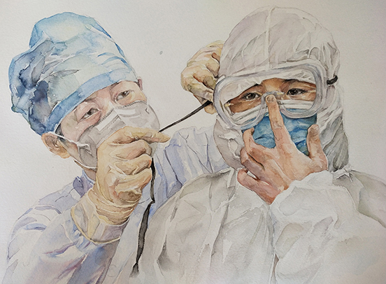《向白衣天使致敬》水彩 李靜萍