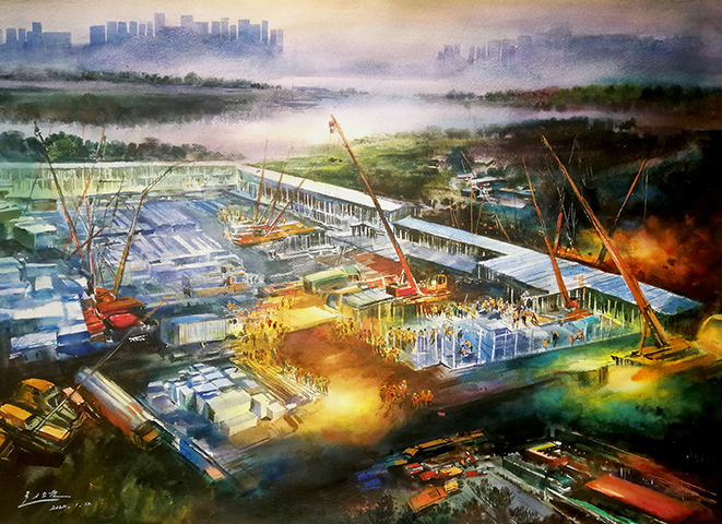 《火神山戰疫》水彩 趙占元
