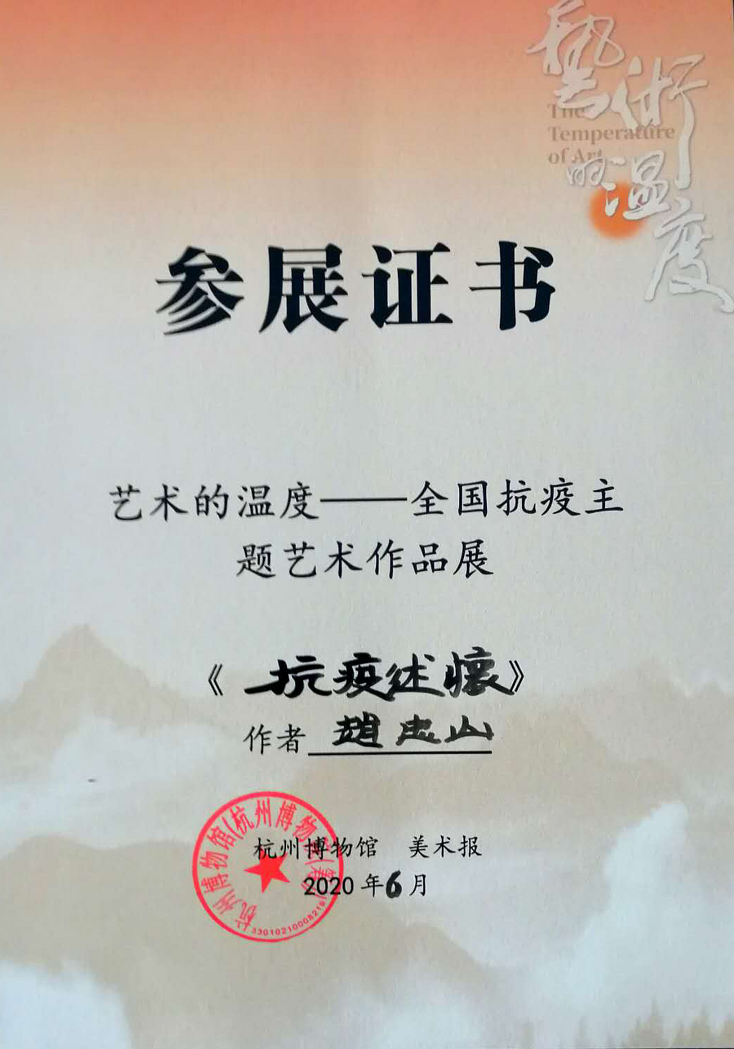 我校文學(xué)與歷史文化學(xué)院(新聞傳播學(xué)院)趙忠山教授書法作品《抗疫述懷》在“藝術(shù)的溫度——全國抗疫主題藝術(shù)作品展”中展出并被杭州博物館收藏