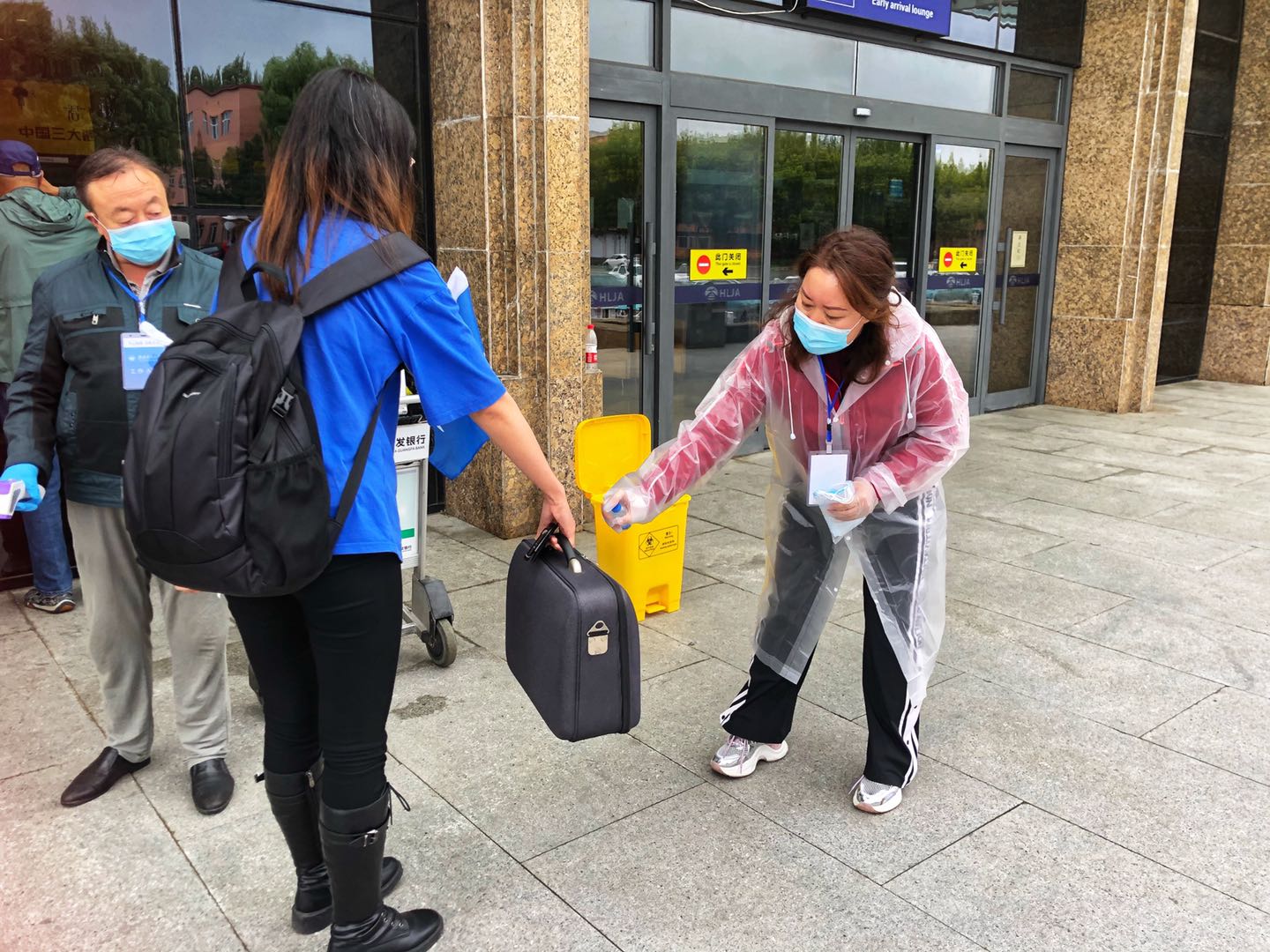 “歡迎回家!”“箱子沉,我來(lái)幫你拿。”在齊齊哈爾民用機(jī)場(chǎng),剛下飛機(jī)的返校學(xué)生還沒(méi)有感受到秋雨的寒涼,就穿上了機(jī)關(guān)黨員服務(wù)隊(duì)老師們送來(lái)的雨衣,收到了學(xué)校為返校學(xué)生精心準(zhǔn)備的愛(ài)心早餐包和醫(yī)療健康包,感受到了學(xué)校對(duì)返校學(xué)生身心健康的關(guān)心重視與濃情關(guān)懷。