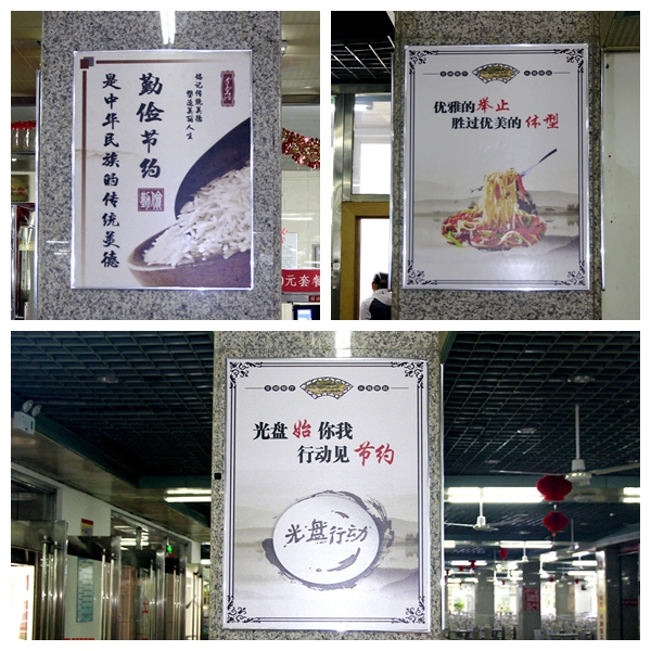 為使厲行節儉、文明就餐的理念深植師生內心,學校在各學生食堂舉辦了“傳承節儉美德、踐行餐桌文明”師生簽名活動。就餐的師生們在印有“傳承節儉美德、踐行餐桌文明”的巨大條幅上,鄭重地簽上了自己的名字,承諾要尊重勞動、珍惜幸福、理性消費、勤儉節約。同時,后勤管理處工作人員還向就餐師生發放了10000份倡議書,使文明用餐理念更加深入人心。