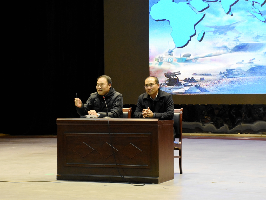 為貫徹落實教育部國防教育辦公室、全軍學生軍訓工作辦公室《2020年學生軍事訓練工作要點》精神,彌補學生軍訓軍事理論教學師資力量不足,促進軍事教學均衡充分發展,10月28日下午,我校邀請黑龍江省教育廳、省軍區戰備建設局軍事教學宣講團成員哈爾濱工程大學李彥濤老師為2020級全體學生進行了軍事理論授課。授課活動通過線上、線下相結合的方式進行,2020級部分同學在文化宮現場聆聽了課程,其他同學在教室和寢室通過觀看線上視頻直播的方式觀看了課程。活動由武裝部副部長劉增發主持。