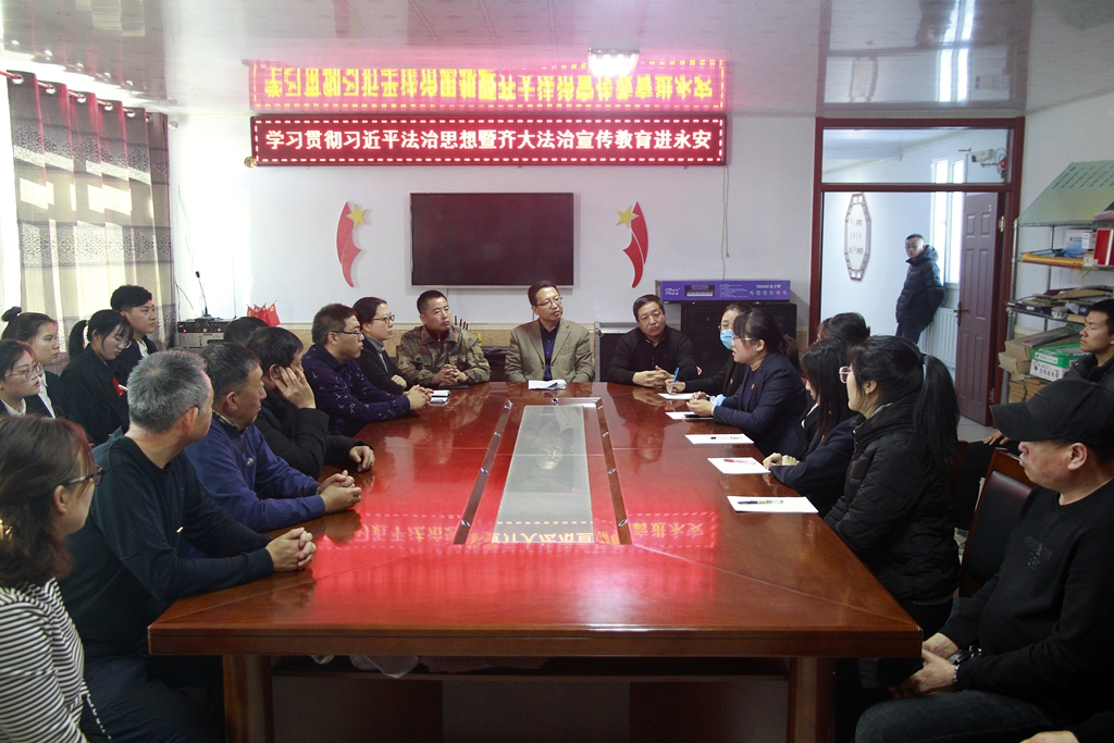 為深入學習貫徹習近平法治思想,深化新時代文明實踐中心共建共育,落實《關于印發<齊齊哈爾大學與拜泉縣新時代文明實踐中心、拜泉縣上升鄉永安村新時代文明實踐站結對共建方案>的通知》(齊大辦(黨)字〔2020〕6號)的文件精神,在第七個“國家憲法日”即將到來之際,11月28日,哲學與法學學院黨委書記于春梅,校黨委宣傳部副部長何強,哲學與法學學院副書記張樹啟,帶領哲學與法學學院30余名師生,前往拜泉縣上升鄉永安村開展習近平法治思想宣傳、法律援助等活動,大力弘揚憲法精神。