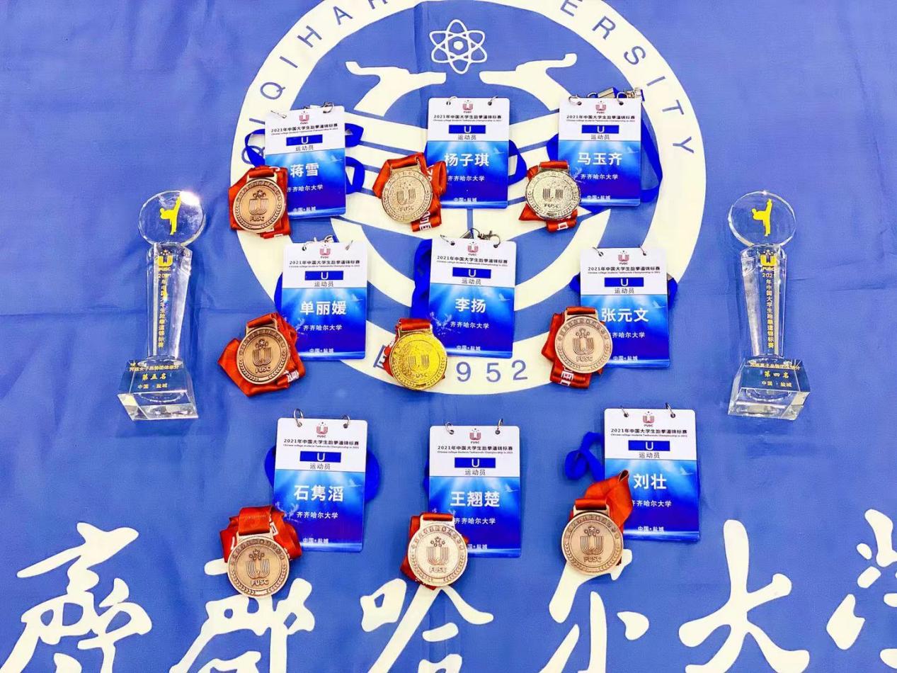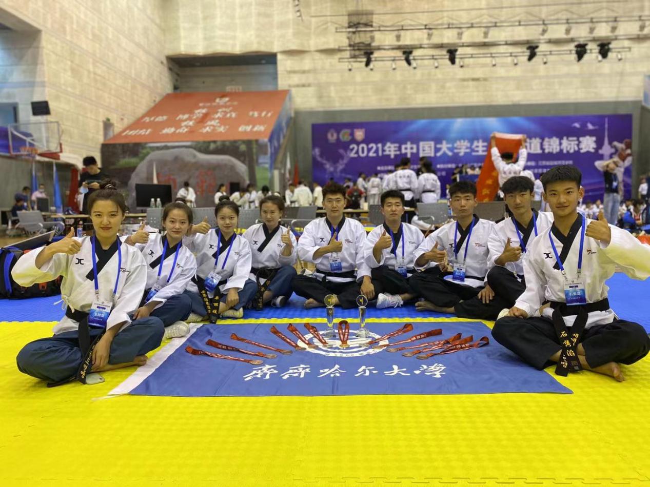 成績源自累積,獎牌凝結汗水。為備戰此次大賽,從4月初,齊齊哈爾大學跆拳道隊就開始了緊張的集訓。在這個驕陽似火,燕語鶯啼的七月。修月老師帶領參賽同學每天進行十個多小時的刻苦訓練,每一天的汗流浹背,每一天的筋疲力竭,每一天的忍耐堅持。終換來了每名隊員均獲獎牌的成功與喜悅。