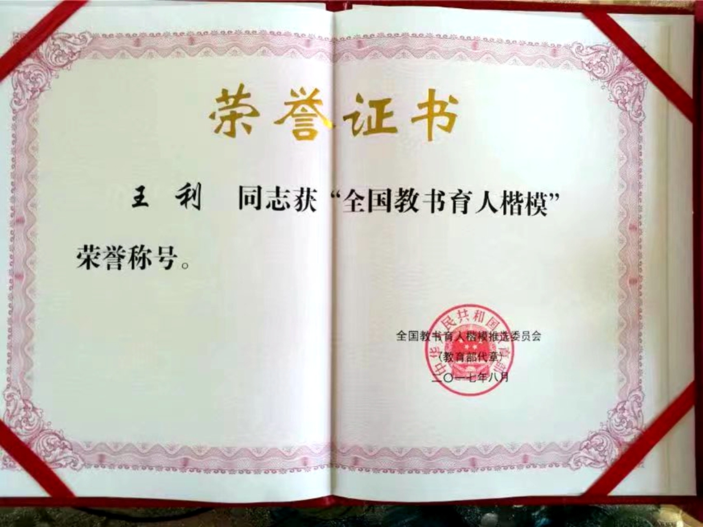 在平凡的教學道路上,王利沒有忘記教書育人的初心,任勞任怨,追求卓越,努力讓自己在平凡的崗位上發出不平凡的回響。作為一名學科帶頭人,為了上好每一節課,他不斷鉆研教材,不斷探索教法,寓教于樂,融情于理,培養學生的創新思維和創新精神。二十多年來,他嚴謹治學,潛心鉆研,投身課程改革,注重實踐,善于反思,多次獲國家、省、市、縣優質課、公開課、科研成果一等獎。積極主持、參與國家、省、市、縣科研課題近20項。出版著作《思想政治教育與傳統文化》,多篇論文在國家級刊物上公開發表。
