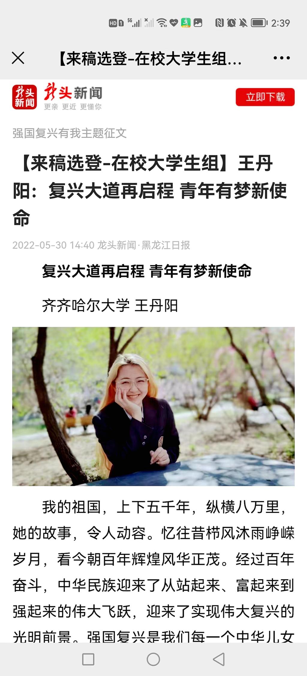 12.王丹陽 《復興大道再啟程 青年有夢新使命》 齊齊哈爾大學