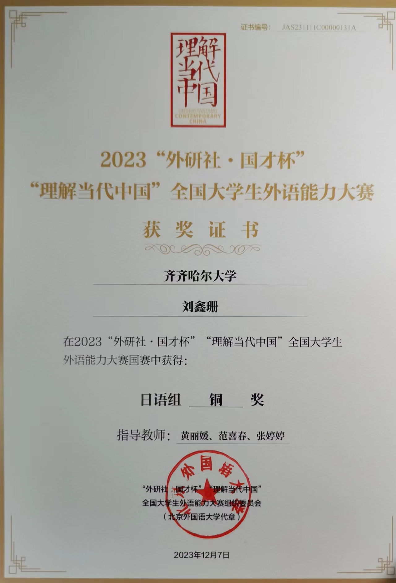 我校學子在2023“外研社·國才杯”“理解當代中國”全國大學生外語能力大賽中喜獲佳績