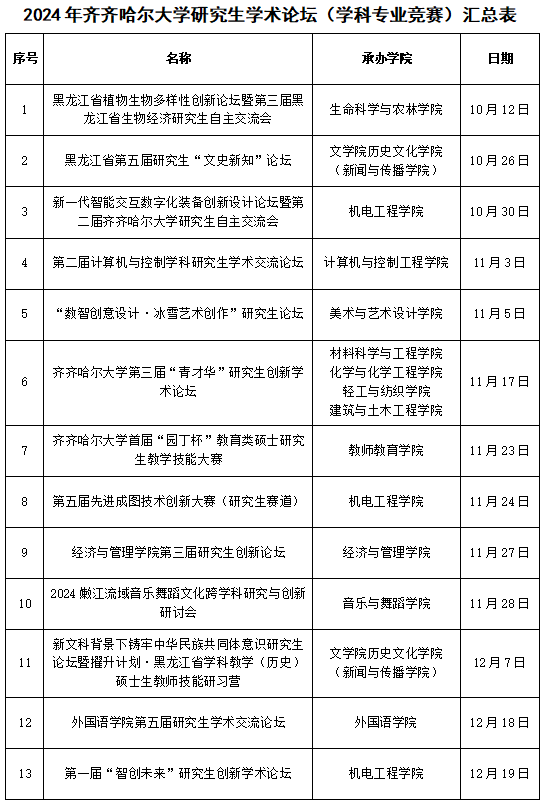 為深入踐行黨的二十屆三中全會(huì)精神及全國教育大會(huì)精神,積極推動(dòng)研究生學(xué)術(shù)交流與合作,深化對(duì)前沿學(xué)術(shù)研究的理解與探索,著力提高研究生的創(chuàng)新能力培養(yǎng)水平,學(xué)校在2024年秋季學(xué)期舉辦了一系列豐富多彩的學(xué)術(shù)活動(dòng),內(nèi)容涵蓋研究生學(xué)術(shù)論壇以及專業(yè)技能比賽等多個(gè)方面,共計(jì)舉辦13場次,吸引了超過2500人次的研究生積極參與。
