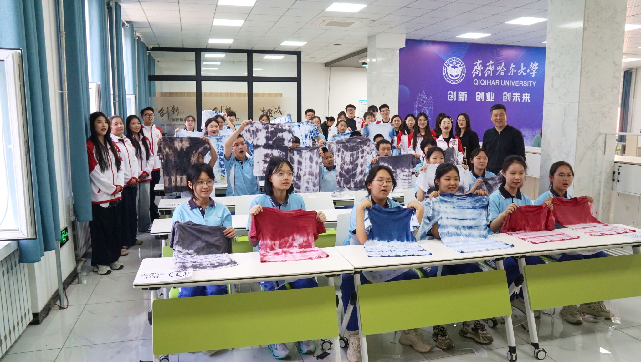 第五十二中學(xué)學(xué)生走進國家市場監(jiān)管技術(shù)創(chuàng)新中心(工業(yè)大麻)、化學(xué)科普實驗探索基地、物理演示與探索實驗室,在專業(yè)教師指導(dǎo)下化身小實驗家,親手調(diào)配化學(xué)試劑、操作物理實驗儀器,體驗科學(xué)知識從書本走進現(xiàn)實生活的奇妙旅程。通過聆聽大學(xué)生講解員講述的“從絲綢之路到一帶一路—跨越千年的文明對話”“化學(xué)家侯德榜”“從動能勢能的永恒轉(zhuǎn)化到科學(xué)報國的守恒之道”等微思政課,以科學(xué)家精神為引領(lǐng),感悟科技工作者踐行“愛國、創(chuàng)新、求實、奉獻”精神,用生命丈量科技興邦的赤誠擔(dān)當(dāng)。活動最后,中學(xué)生在研究生的帶領(lǐng)下體驗了非遺草木染技藝,當(dāng)潔白的襯衫在植物染料中綻放出不同色彩時,學(xué)生們深刻領(lǐng)悟文化自信是最基本、最深沉、最持久的力量。
