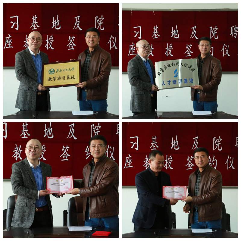 在儀式上,副院長肖國棟與北京樂桔影視文化傳媒公司總裁梁策共同簽署《齊齊哈爾大學北京樂桔影視文化傳媒公司共建實習基地協(xié)議書》;副院長肖國棟為北京樂桔影視文化傳媒公司授牌,樂桔影視總裁梁策接受牌匾;副院長肖國棟為院聘客座教授頒發(fā)聘任證書;樂桔影視總裁梁策為齊齊哈爾大學文學與歷史文化學院授牌,副院長肖國棟接受牌匾。