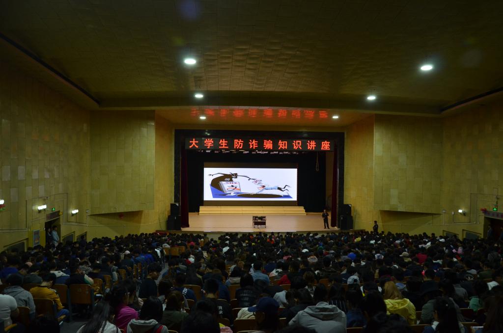 為切實維護廣大學生的生命財產(chǎn)安全,提高學生的安全防范意識和自我保護能力,有效預防學生受騙情況發(fā)生,根據(jù)“讓安全駐于心、化于行”主題“學生安全月”活動的整體安排,我校聯(lián)合市公安局反詐騙中心于2017年4月19日中午12:40,在中區(qū)文化宮舉行大學生防詐騙知識講座。