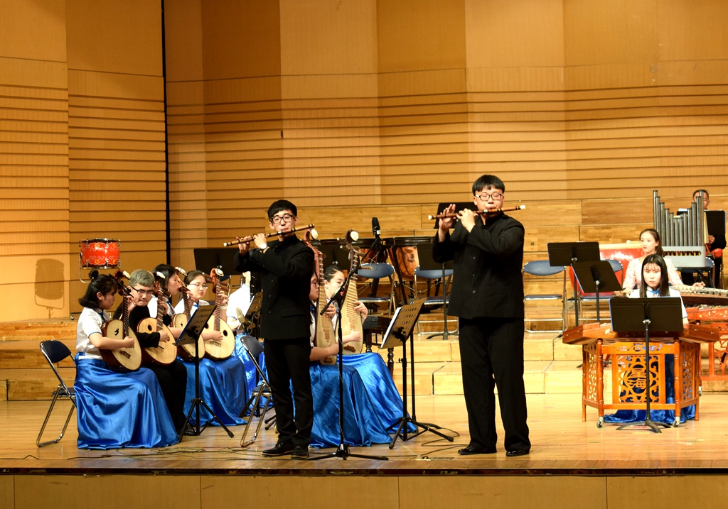 5月16日晚,2017“高雅藝術進校園”——東北農業大學民族器樂專場音樂會在我校音樂廳隆重奏響。來自東北農業大學藝術學院青年民族管弦樂團的60余名師生用他們的精湛技藝為我校師生送來一場高水平的音樂盛宴。我校黨委副書記齊宏偉,學校辦公室主任張德慶,黨委宣傳統戰部部長王曉梅,學生工作部(學生處)部(處)長姜波,黨委宣傳統戰部副部長何強,音樂與舞蹈學院黨政班子全體和1000余名師生共同欣賞了演出。東北農業大學藝術學院副院長于洋等領導一起觀看了演出。