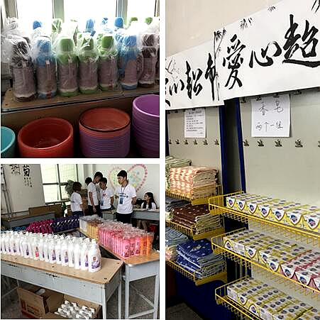 截止5月31日,本學期“愛心超市”共向1646名學生發放物品總計3470件,其中水壺601個、雨傘542把、水杯270個、毛巾385條、臉盆442個、衣架578組、洗發液154個、沐浴液145個、香皂260塊、書籍71本、短袖22件。