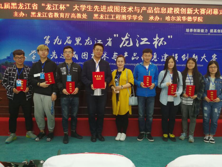 2017年6月3日,第九屆黑龍江省"龍江杯"大學(xué)生先進(jìn)成圖技術(shù)與產(chǎn)品信息建模創(chuàng)新大賽在哈爾濱華德學(xué)院圓滿落幕。大賽由黑龍江省教育廳高教處和黑龍江工程圖學(xué)學(xué)會共主辦,共分機(jī)械類和建筑類兩類競賽。我校機(jī)械類代表隊(duì)榮獲團(tuán)體一等獎1項(xiàng)、個人全能一等獎7項(xiàng),建筑類代表隊(duì)榮獲團(tuán)體二等獎1項(xiàng)、個人單項(xiàng)一等獎1項(xiàng)、二等獎6項(xiàng)。