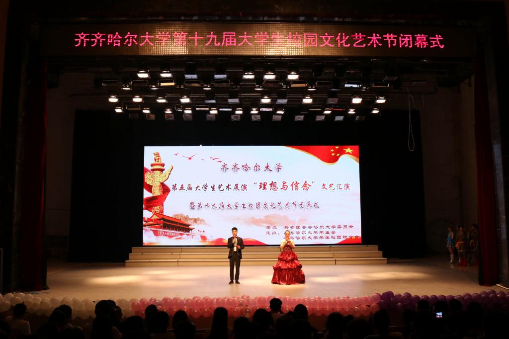 以“青春、理想、信念”為主題的我校第十九屆大學生校園文化藝術節歷時一個月,在全校各級團學組織的精心策劃和有關部門的大力支持下,在廣大師生的積極參與下,圓滿落下帷幕。6月14日晚,齊齊哈爾大學第五屆大學生藝術展演“理想與信念”文藝匯演暨第十九屆大學生校園文化藝術節閉幕式在文化宮隆重舉行。