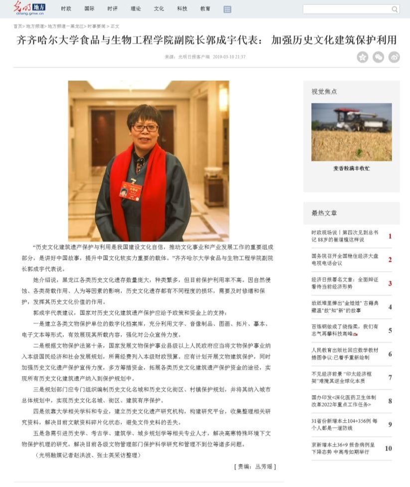 【光明網】全國人大代表郭成宇:加強歷史文化建筑保護利用