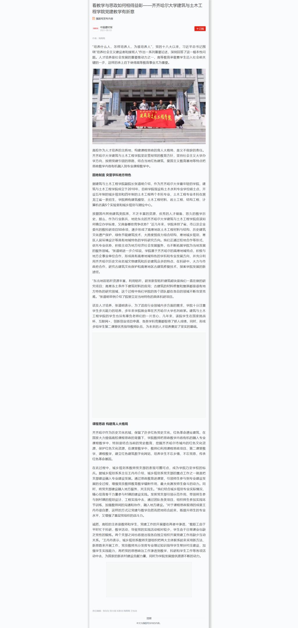 下一條:【今日頭條】齊齊哈爾大學(xué)建筑與土木工程學(xué)院 教學(xué)與思政相得益彰