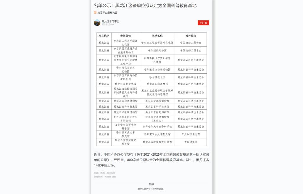 上一條:【齊齊哈爾日?qǐng)?bào)】齊齊哈爾大學(xué)生命科學(xué)館入選全國(guó)科普教育基地