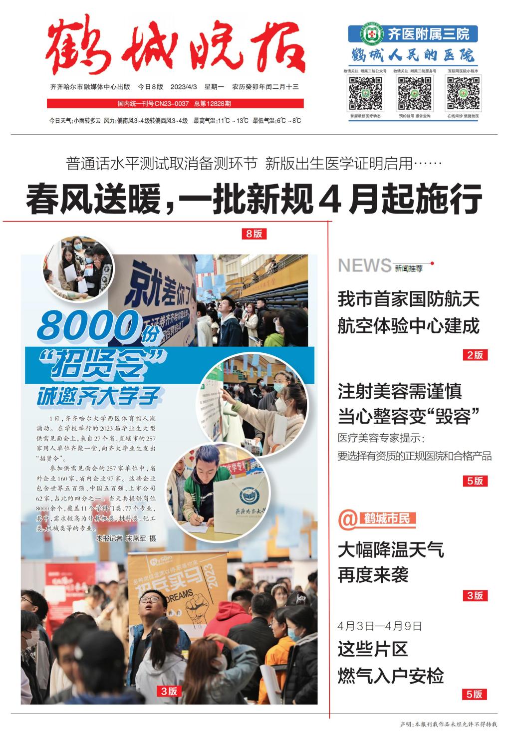 上一條:【鶴城晚報】8000余個崗位發出“招賢令 齊齊哈爾大學舉行2023屆畢業生大型供需見面會