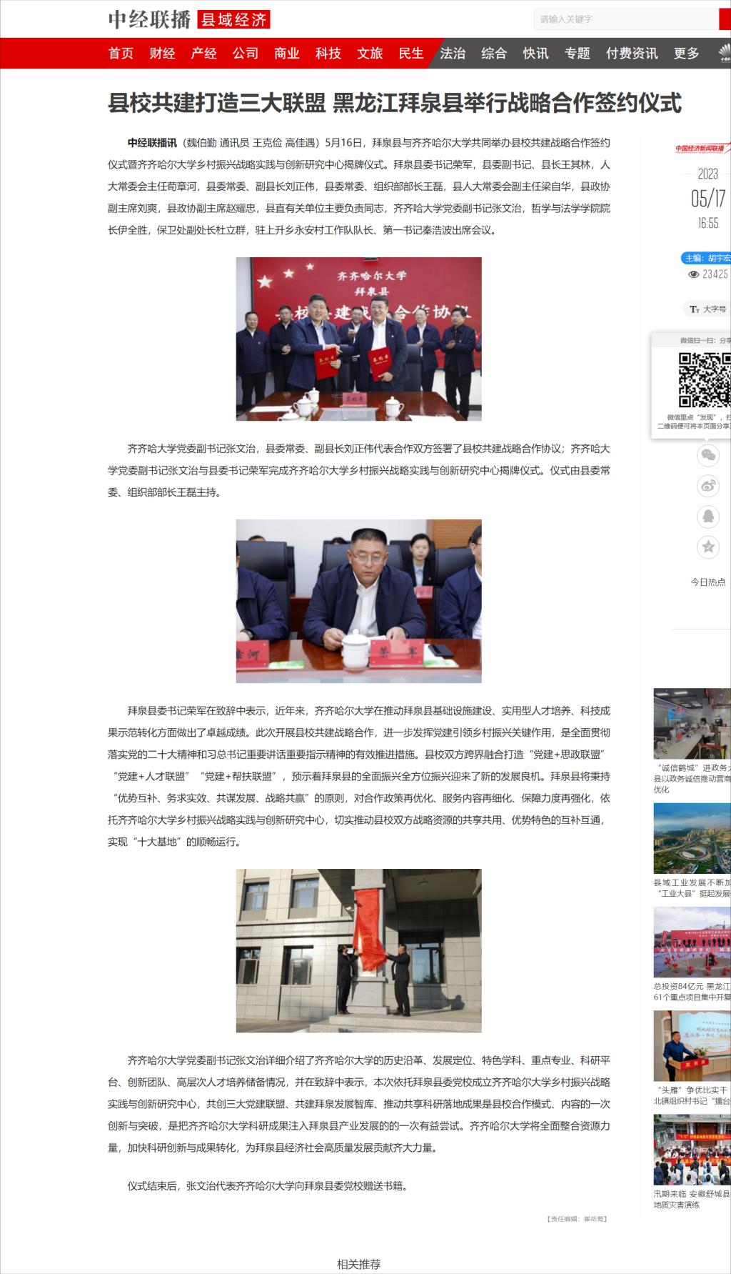 下一條:【央廣網】拜泉縣與齊齊哈爾大學共建打造“三大聯盟”