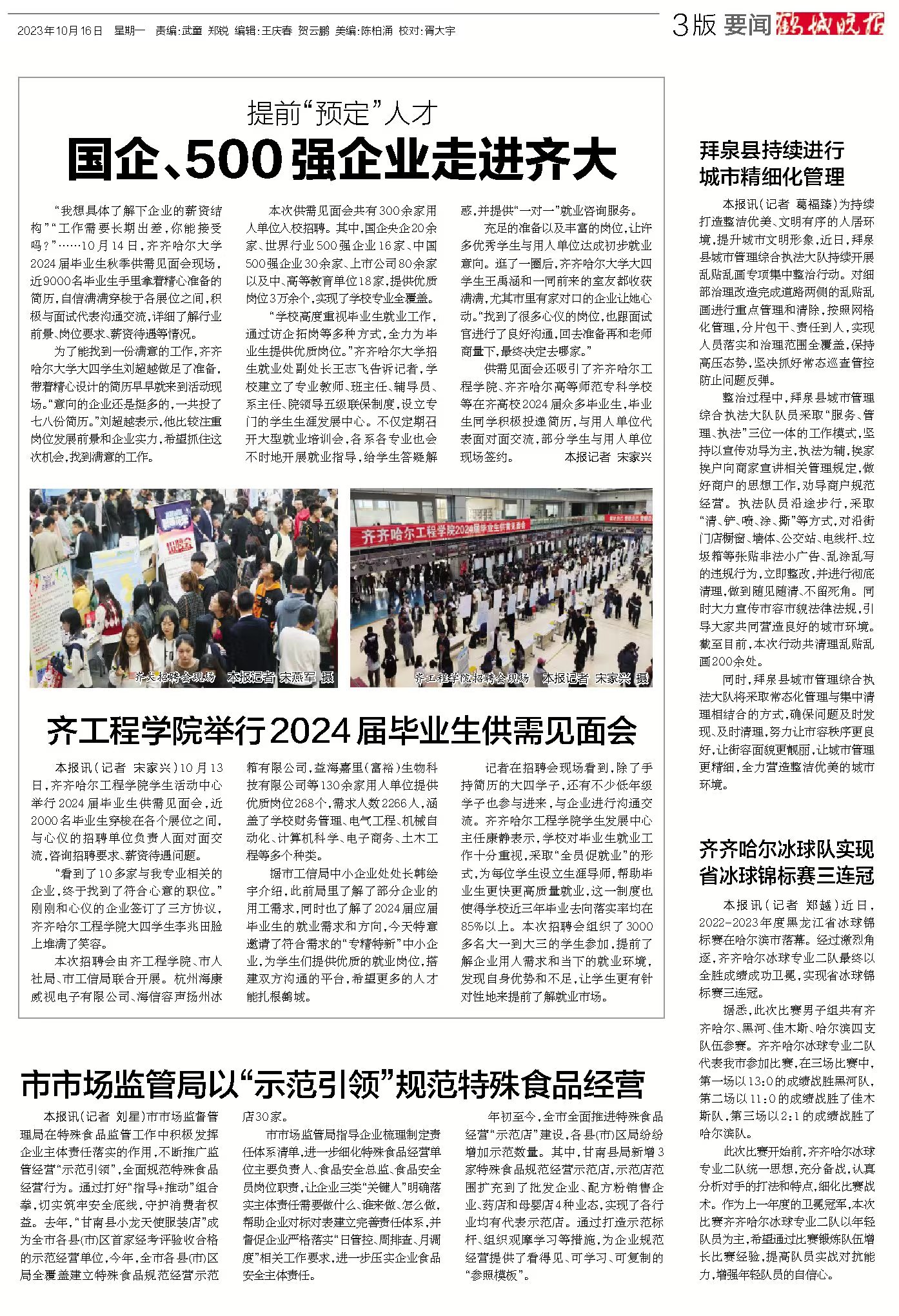 【鶴城晚報】國企、500強(qiáng)企業(yè)走進(jìn)齊大“預(yù)定”人才
