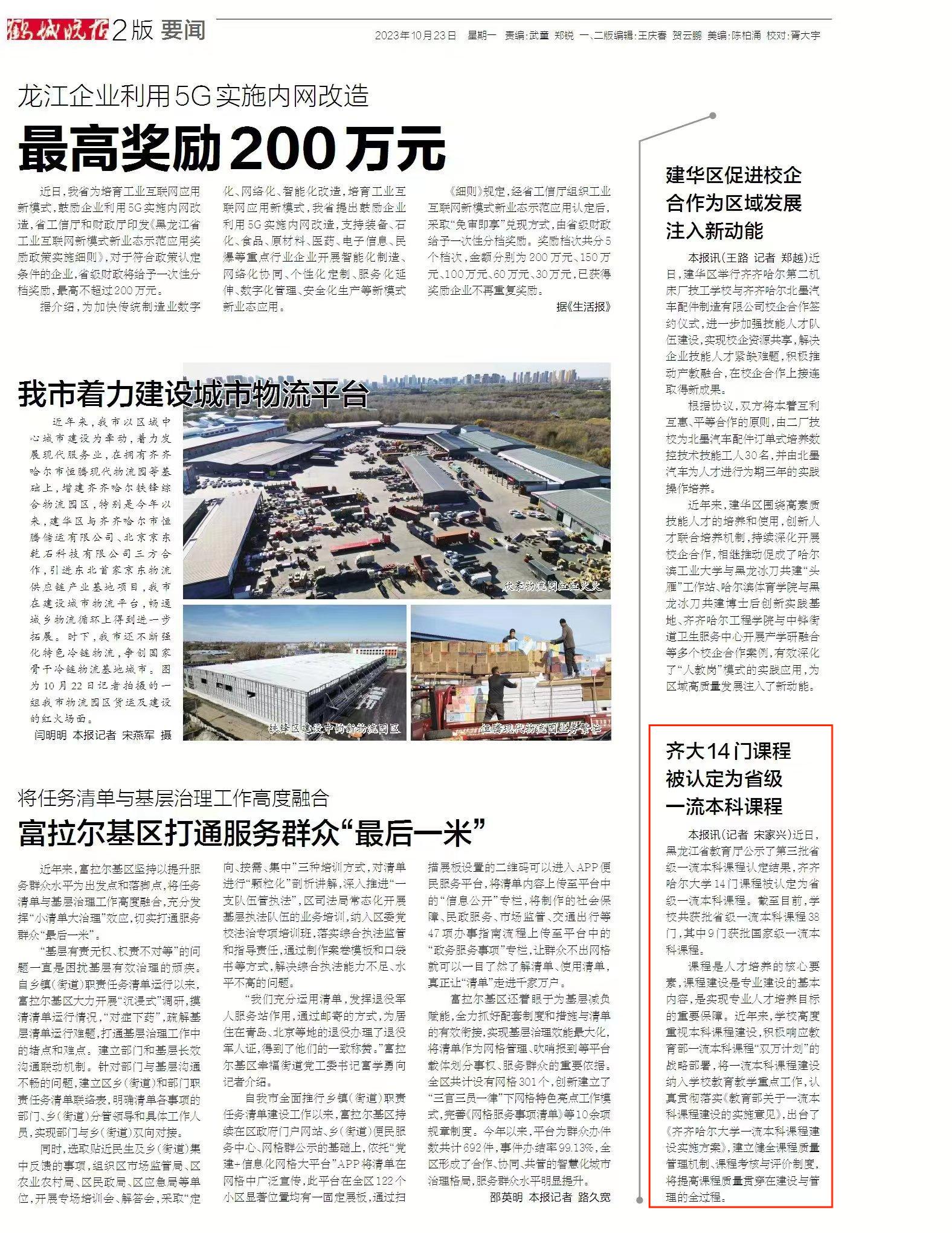 上一條:【齊齊哈爾日報】齊大14門課程被認定為省級一流本科課程