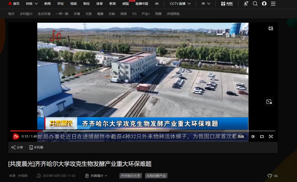 【央視網(wǎng)】齊齊哈爾大學(xué)攻克生物發(fā)酵產(chǎn)業(yè)重大環(huán)保難題
