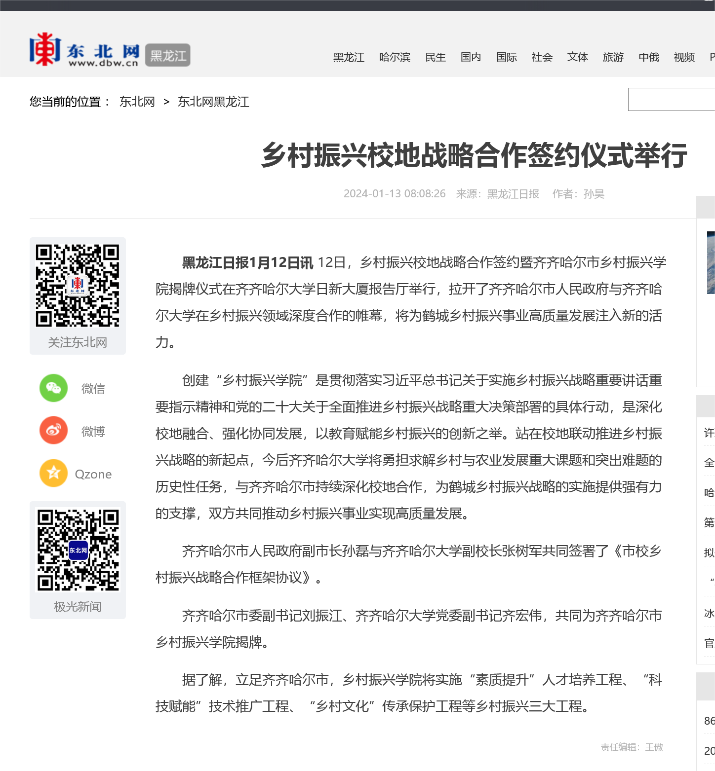 上一條:【人民網(wǎng)】齊齊哈爾市人民政府與齊齊哈爾大學(xué)舉行校地戰(zhàn)略合作簽約暨揭牌儀式