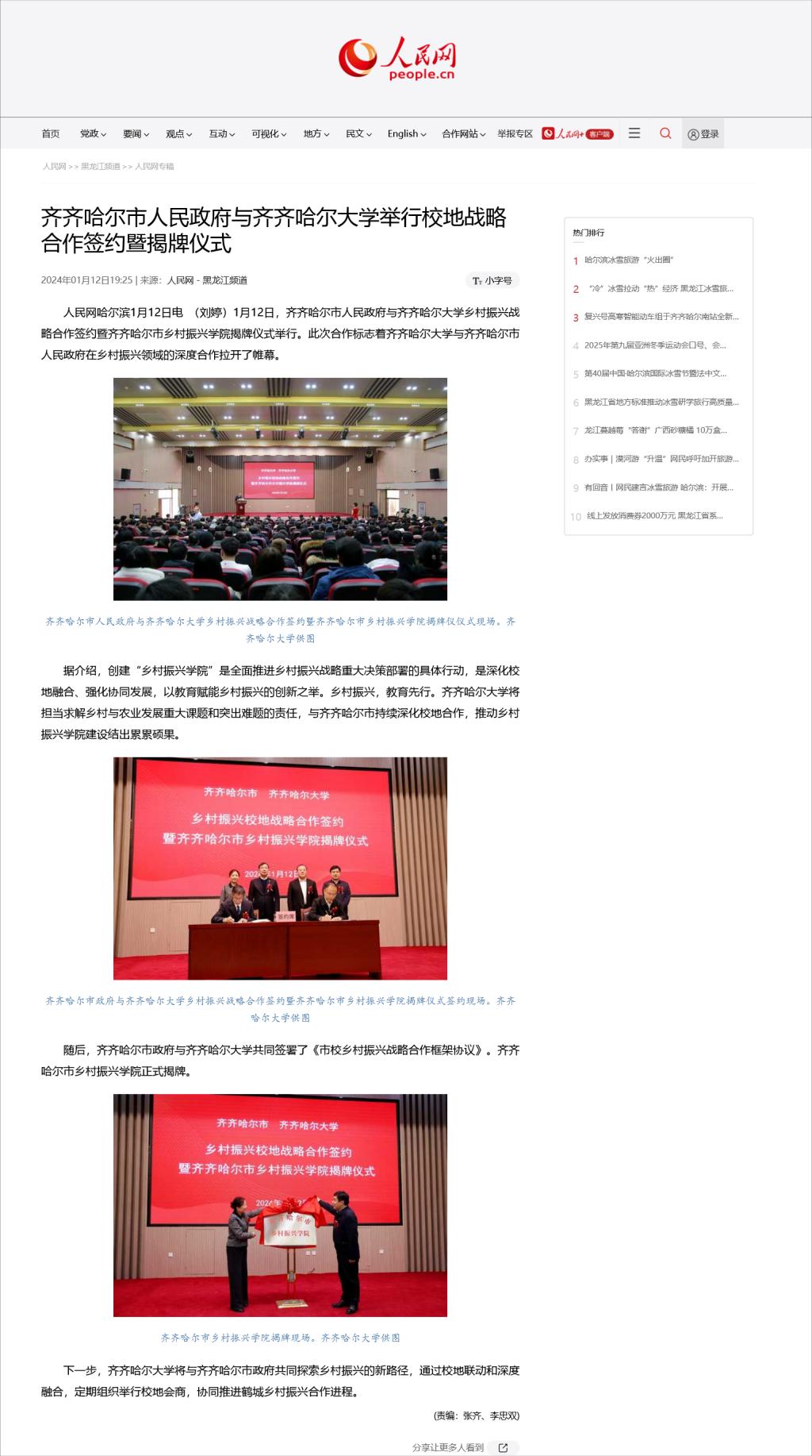 【人民網(wǎng)】齊齊哈爾市人民政府與齊齊哈爾大學(xué)舉行校地戰(zhàn)略合作簽約暨揭牌儀式