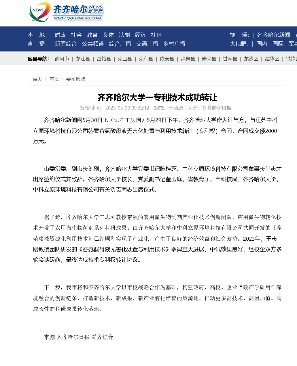 下一條:【齊齊哈爾新聞網(wǎng)】齊齊哈爾大學(xué)谷氨酸母液無(wú)害化處置與利用技術(shù)成功轉(zhuǎn)讓