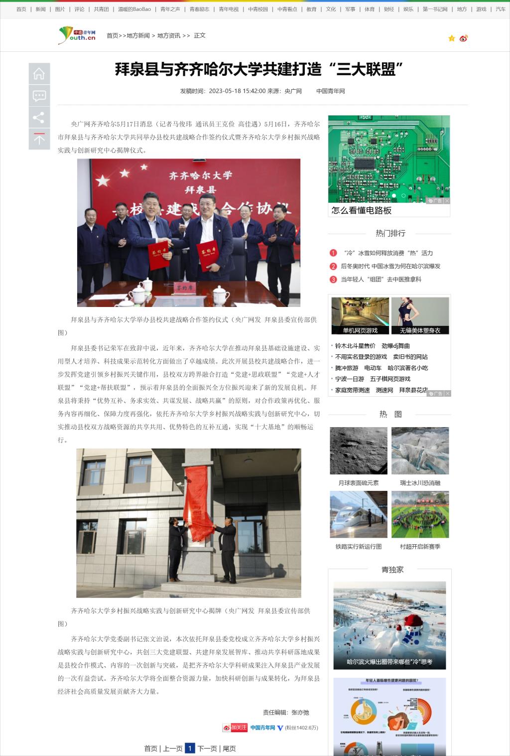 下一條:【中國經濟新聞聯播】縣校共建打造三大聯盟 黑龍江拜泉縣舉行戰略合作簽約儀式