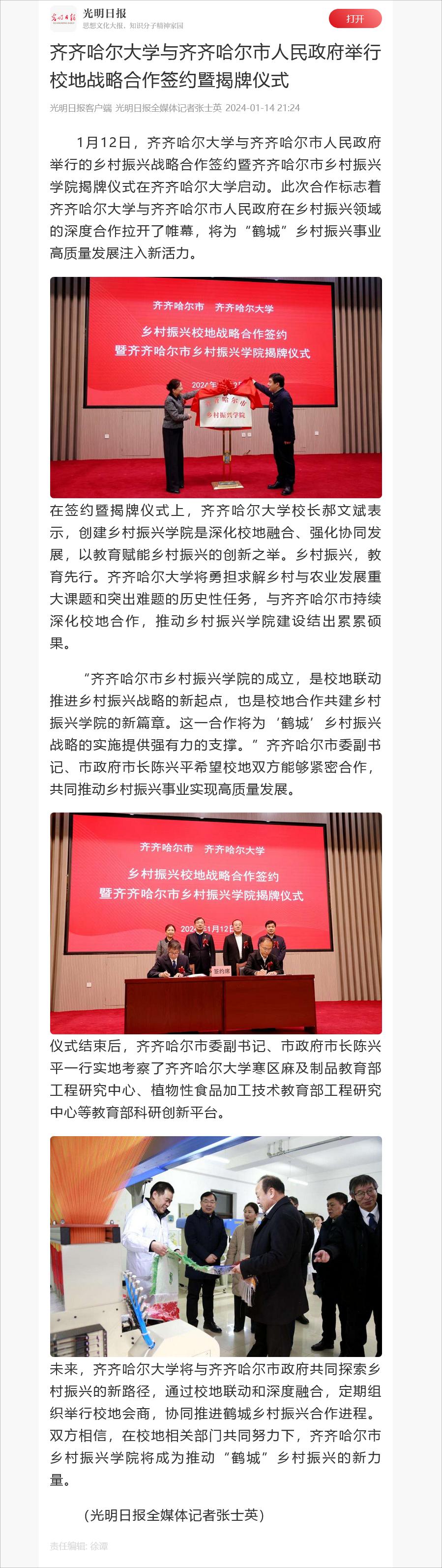 下一條:【人民日報】深化校地合作!齊齊哈爾市鄉(xiāng)村振興學(xué)院揭牌