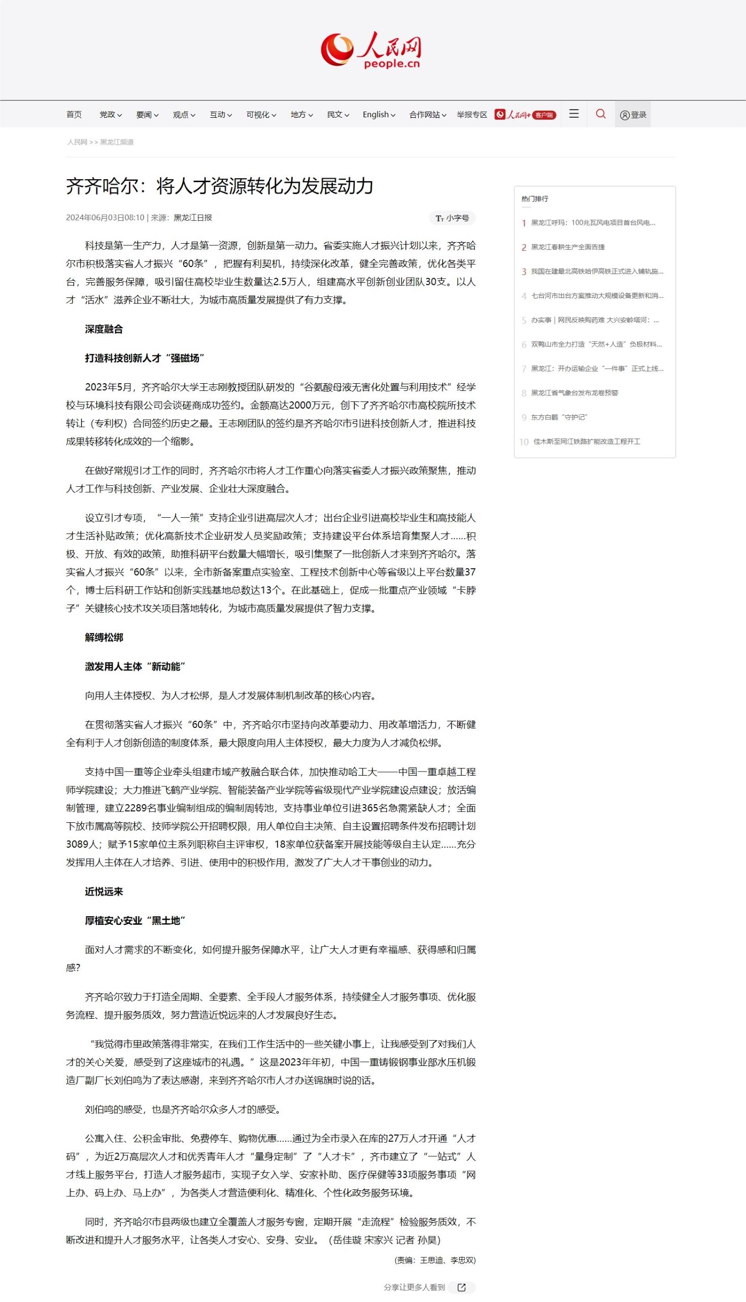 【人民網(wǎng)】齊齊哈爾:將人才資源轉(zhuǎn)化為發(fā)展動力