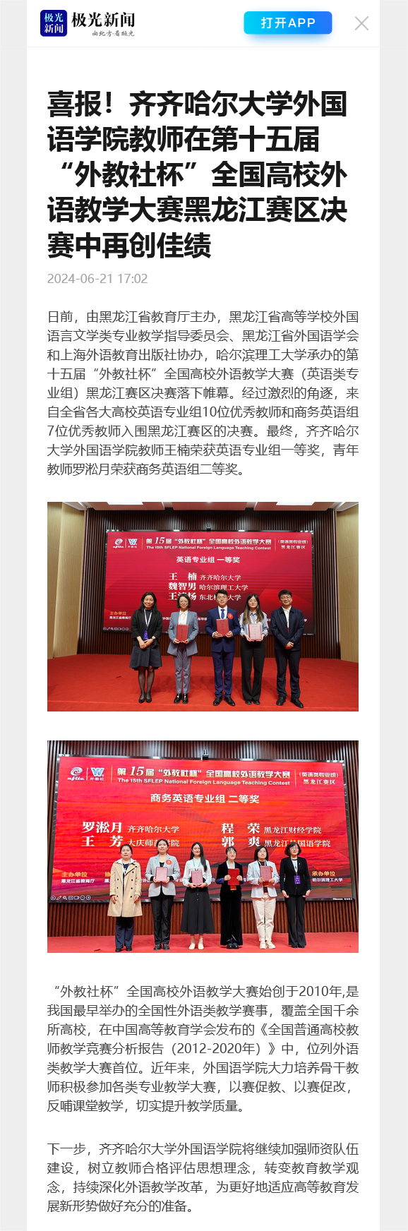 下一條:【極光新聞】喜報!齊齊哈爾大學學生在第五屆全國師范生微課大賽中獲得佳績
