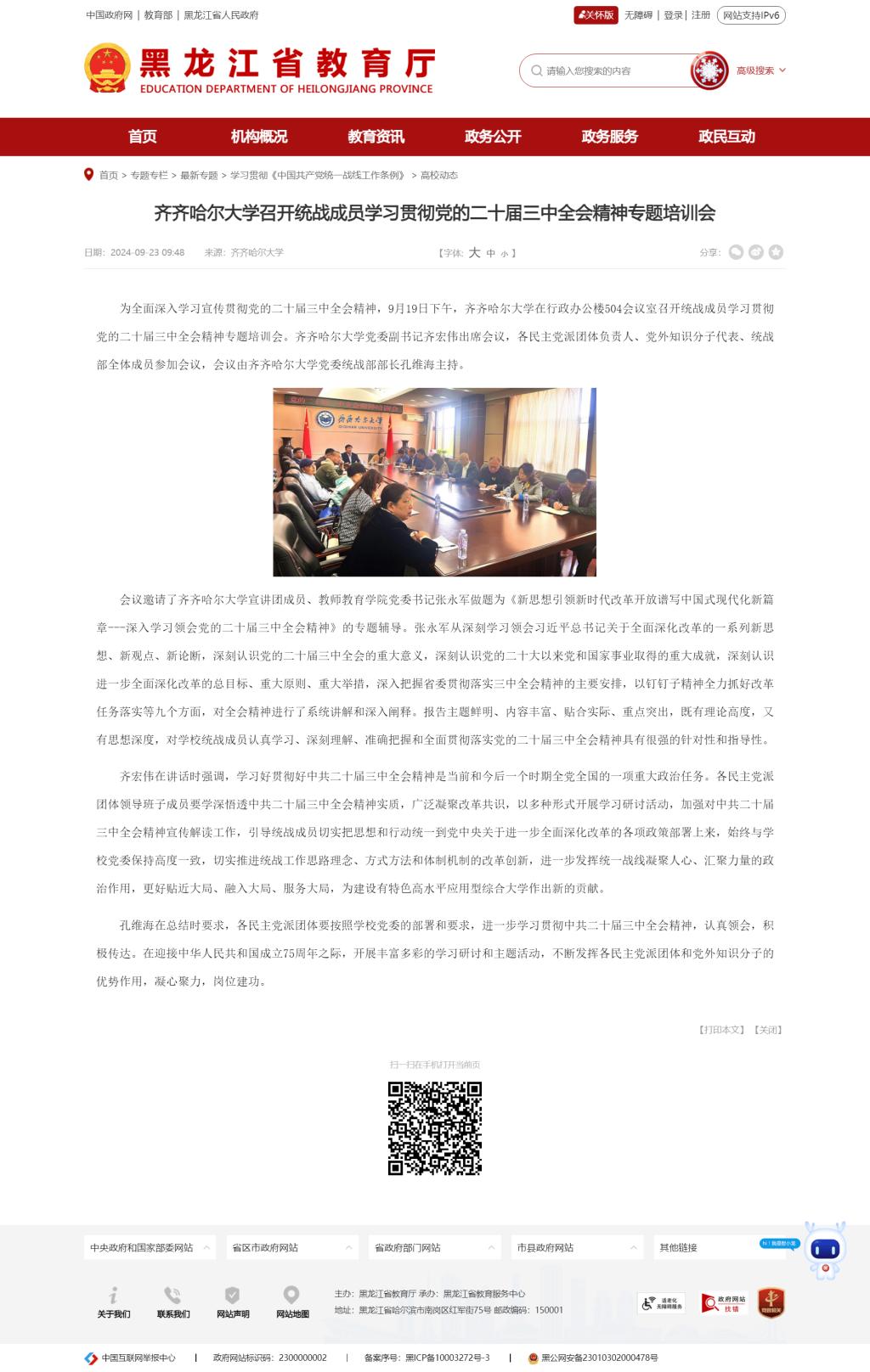 【黑龍江省教育廳】齊齊哈爾大學召開統戰成員學習貫徹黨的二十屆三中全會精神專題培訓會