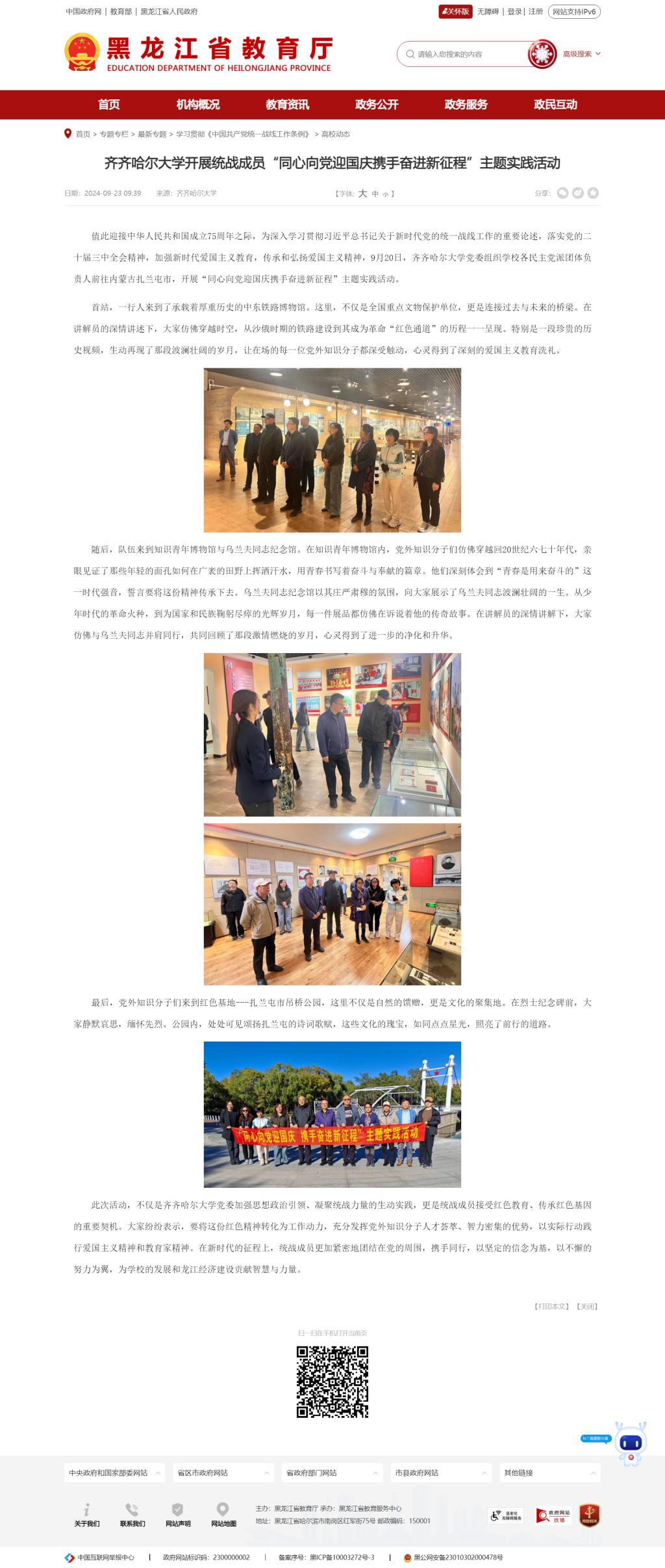 【黑龍江省教育廳】齊齊哈爾大學開展統(tǒng)戰(zhàn)成員“同心向黨迎國慶攜手奮進新征程”主題實踐活動