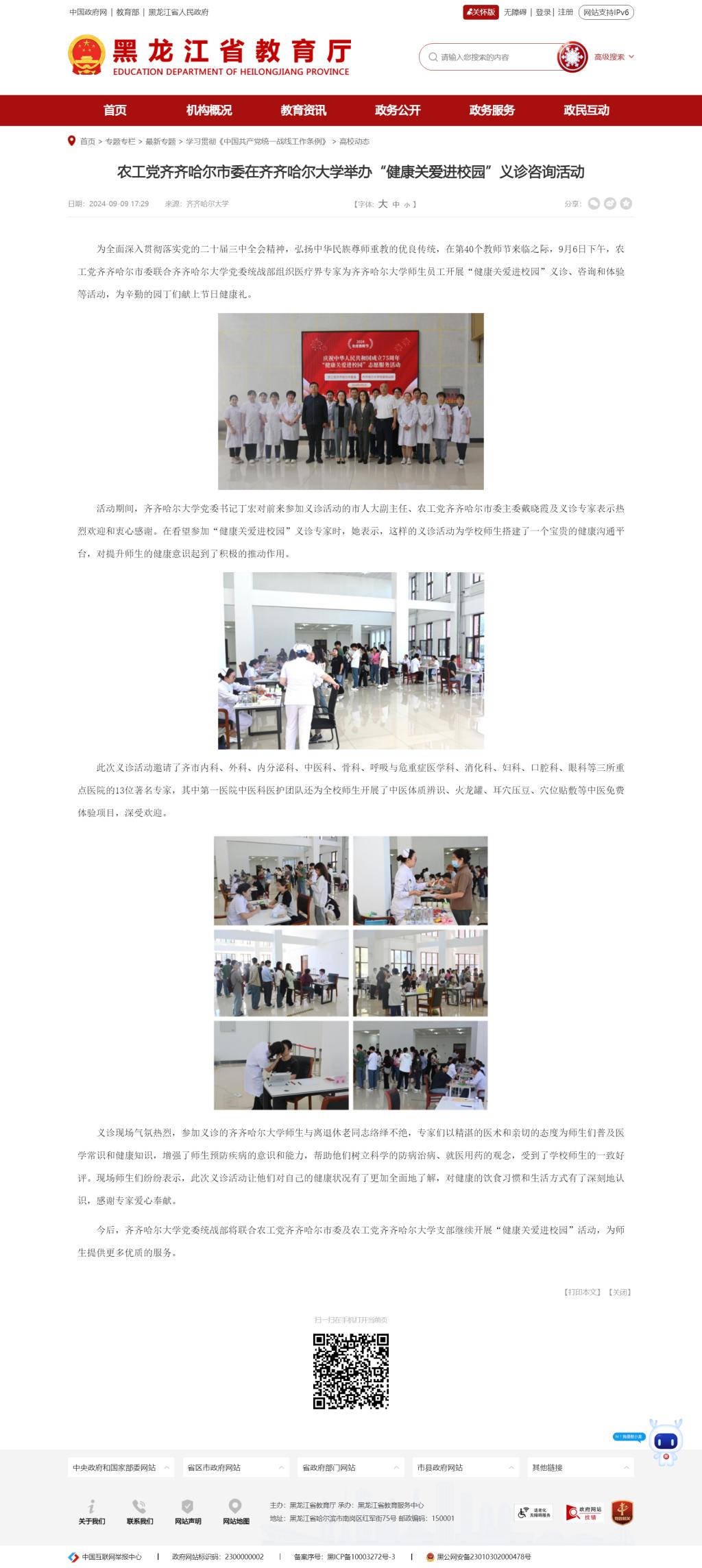 【黑龍江省教育廳】農工黨齊齊哈爾市委在齊齊哈爾大學舉辦“健康關愛進校園”義診咨詢活動