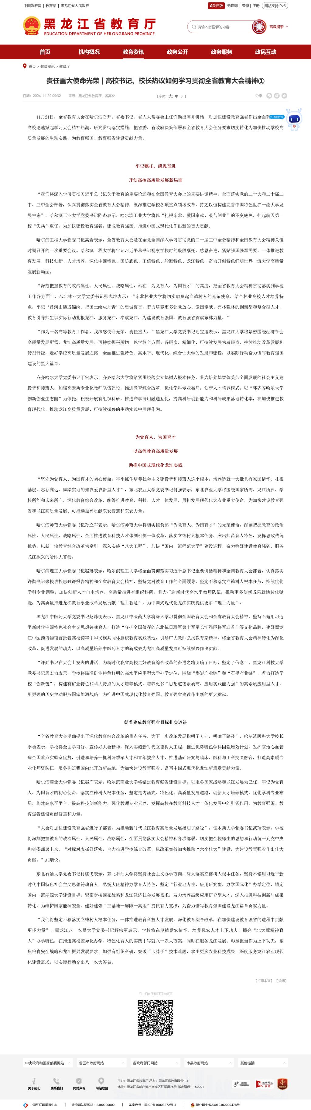 【黑龍江省教育廳】責(zé)任重大使命光榮 | 高校書記、校長(zhǎng)熱議如何學(xué)習(xí)貫徹全省教育大會(huì)精神①