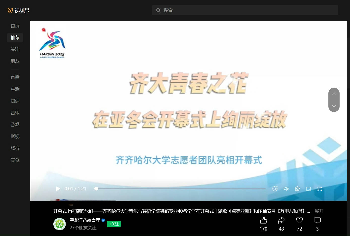 下一條:【黑龍江省教育廳】開幕式上閃耀的他們——齊齊哈爾大學志愿者擔任引導員,冰雪同夢,亞洲同心,志愿同行。