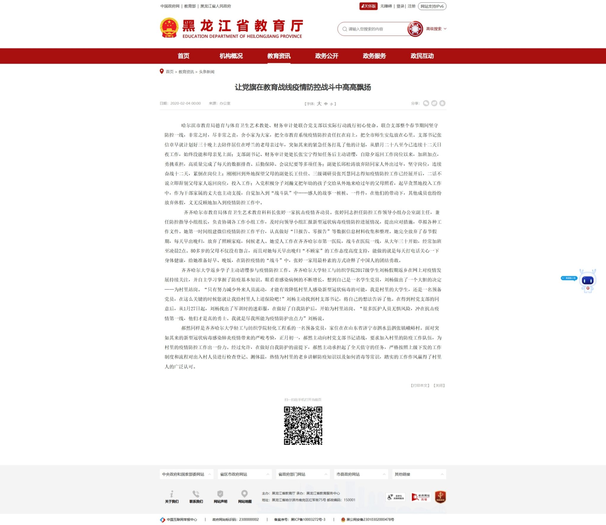【黑龍江省教育廳】讓黨旗在教育戰線疫情防控戰斗中高高飄揚