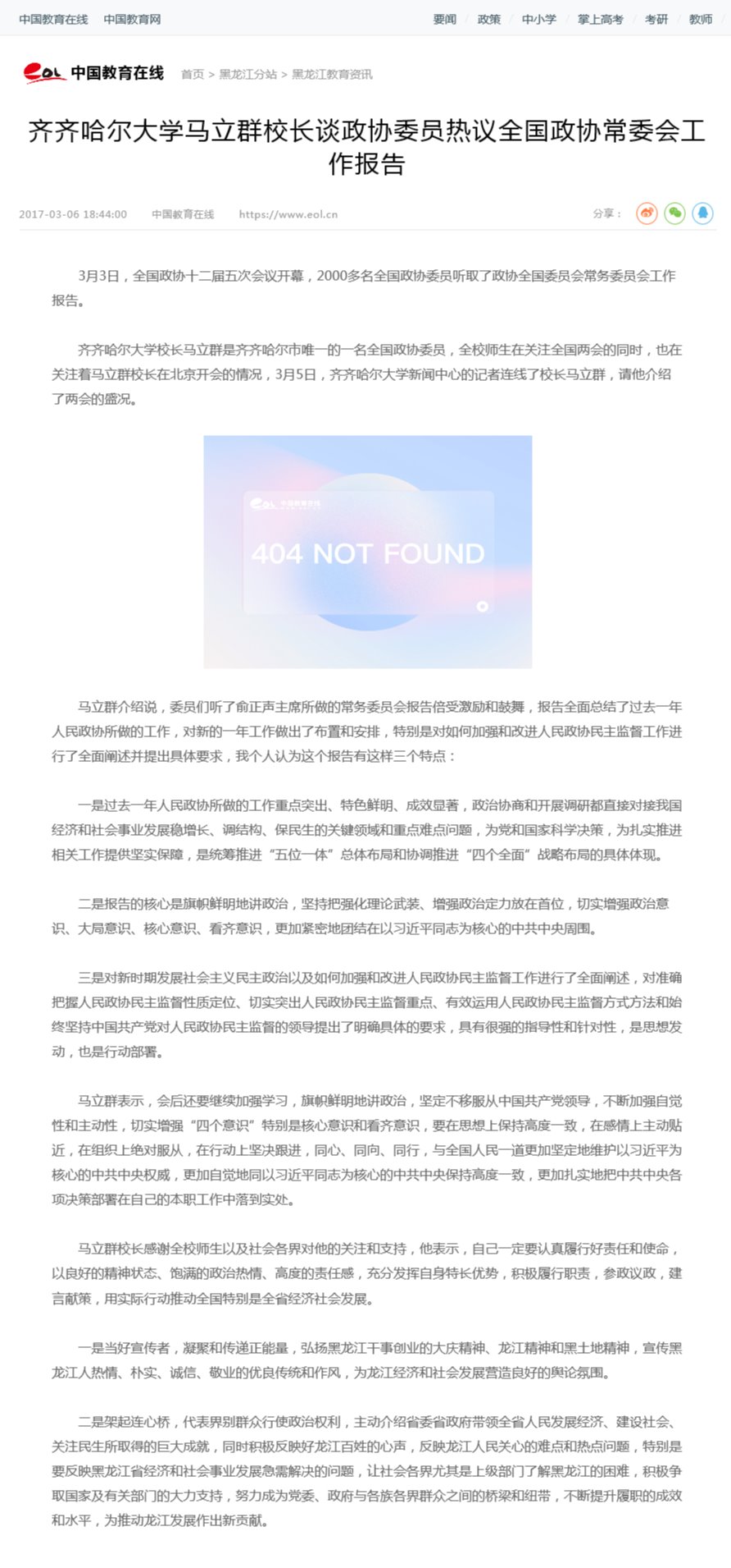 下一條:【中國教育在線】齊齊哈爾大學馬立群校長談政協委員熱議全國政協常委會工作報告