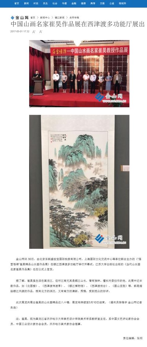 下一條:【京江晚報】崔昊山水畫作品展亮相西津畫院