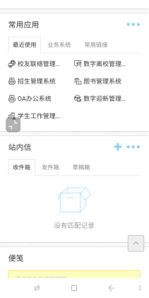 4.各個”業務系統“直接進入,無需再次輸入賬號密碼。這里的”站內信”就是校內郵箱可以快捷發送接收,相對公網郵箱很好的保護信息的外泄!這里的”便簽“功能給你記錄一些臨時文檔記錄提供方便!